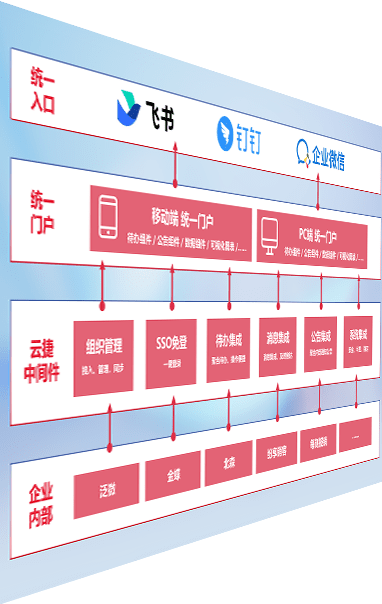 对协作平台提供支持服务,,支持企业应用与协作平台对接,,,包含组织同步、、、消息集成、、待办集成等。。。。支持目前主流的协作平台:钉钉、、、、企微和飞书。。
